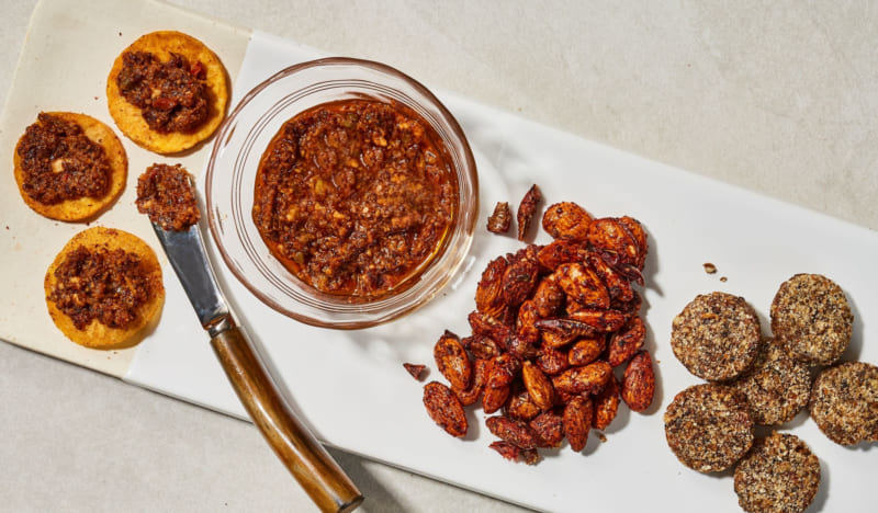 You will therefore be able to taste almonds roasted with grasshopper salt flavored with lime, tapenade of dried tomatoes with mealworms and sea bacon, potato chips with seaweed and mealworms, shortbread biscuits with pecans, crickets and mushrooms.