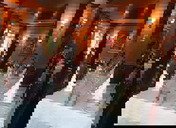 The restaurant is separated into different sections including a small bar area.
