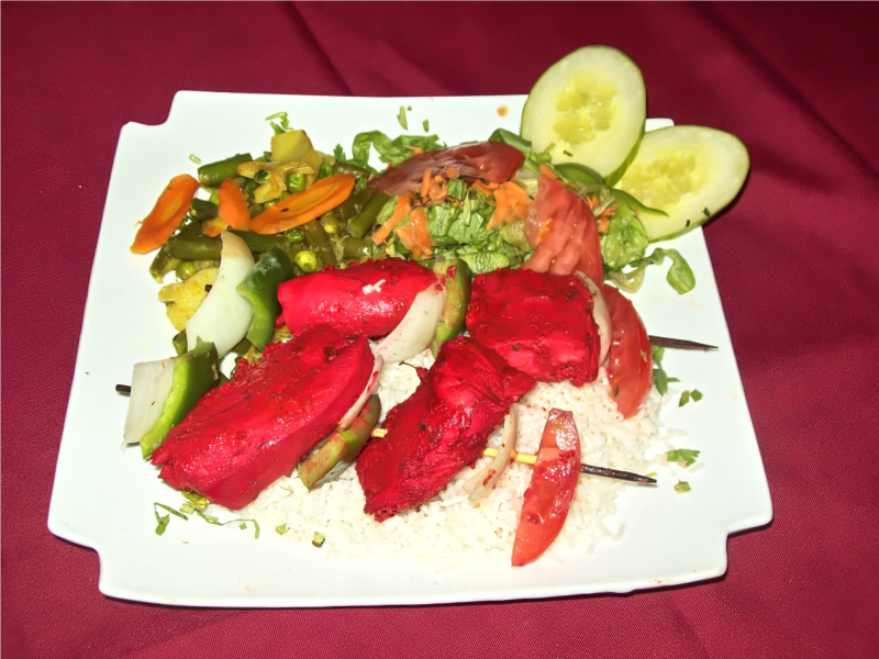 mon fils et moi avons choisi ce resto pour notre 1ère expérience de resto indien et avons été ravis, avons demandé le menu à la carte qu'il y avait dehors devant le resto, car ce n'était pas le même menu qu'on nous avait donné et nous avons pris la table d'hôte de poulet Kashmir et de poulet Tikka Masala et avons partagés en goûtant ces 2 plats différents excellents, avions la soupe aussi, un délicieux bouillon de poulet citronné avec un soupçon de légumes dedans et le tout avec 2 pains naans géants chauds super bons, nous avions droit à un dessert (boule de pâte frite dans sirop sucré) pour nous deux ainsi qu'un café pour nous deux.
