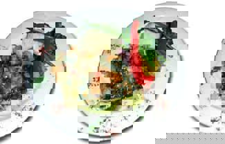 Accompagnant l’assiette de poisson, bien sûr des légumes, comme des lanières de piments, des asperges, du brocoli et du riz. L’huile basilic se frayant un chemin jusqu’au riz donnait à ce dernier une autre dimension.