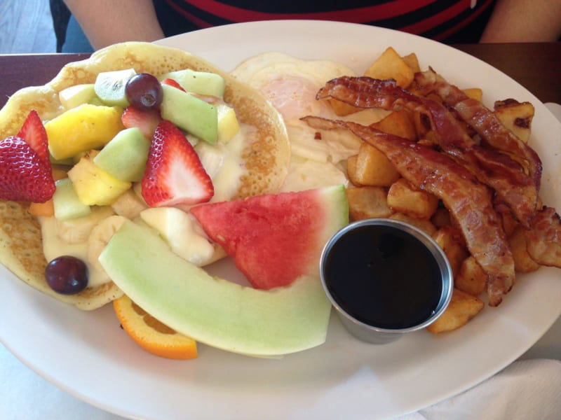 Vous préférez les petits plats santé? On vous offre des coupes de fruits et du yogourt. Vous êtes affamé? Vous pourrez manger un peu de tout en optant pour l’un des choix d’assiette combinant, par exemple, deux œufs bacon avec une crêpe aux fruits. Un menu déjeuner du jour est également disponible.