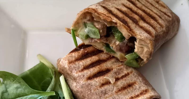 On prend place à une petite table pour deux et on sélectionne un petit jeu dans une étagère pour patienter. Le restaurant se remplit tranquillement et bientôt nos assiettes sont livrées à notre place. Nos wraps passés sous le grill du panini s’avèrent délicieux. Le petit côté croustillant du tortillas fait franchement différent de la texture un peu mouillée habituelle. J’apprécie aussi le fait qu’ils soient coupés en deux pour faciliter la tâche. Et en plus, on peut partager. Je croque donc dans le wrap au poulet garni d’une sauce fromage ail et herbes , poivrons et oignons à l’érable. On apprécie toutes les deux! Le petit côté sucré est très intéressant et le tout est délicat. Du côté du French tacos, c’est plus costaud : bœuf haché, purée de patates douces, patates sautées, fromage, poivron, oignons, épinards, coriandre, guacamole et lime. J’apprécie aussi! Petit bémol toutefois pour la verdure servie dans l’assiette, sans vinaigrette.